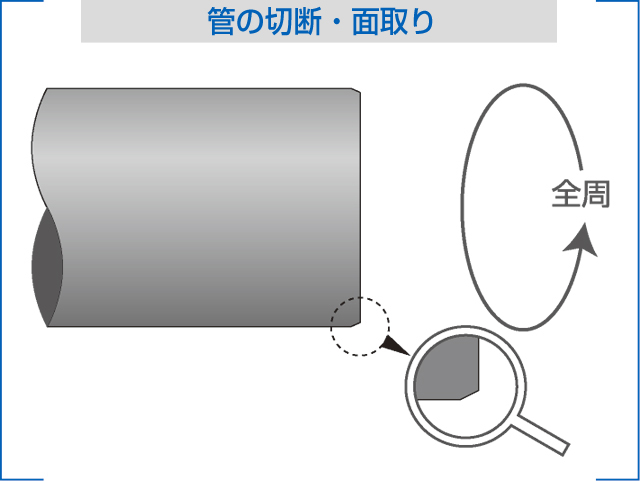 挿入パイプの端部を内外面とも面取りして下さい。