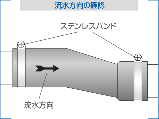パイプ挿入後、両端に付属されているステンレスバンドを締め、確実に接続して下さい。
